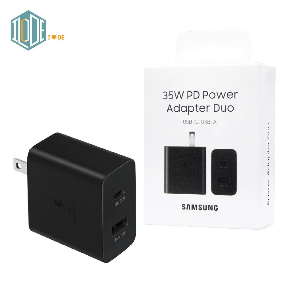 Samsung Dual USB-C / USB-A 35W PD Adaptador de Corriente Duo Bloque de Carga - Negro